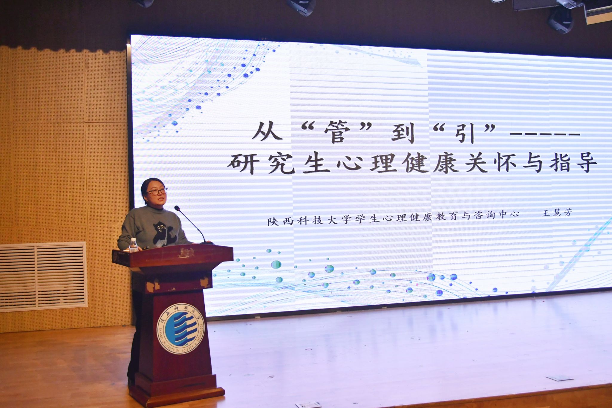 1月6日下午,陜西科技大學(xué)在設(shè)藝小劇場(chǎng)召開2025年研究生導(dǎo)師“研究生心理健康教育”專項(xiàng)培訓(xùn)會(huì),培訓(xùn)由研工部副部長(zhǎng)馬振興主持,各學(xué)院分管研究生工作副院長(zhǎng)及200余名導(dǎo)師代表參加了此次培訓(xùn)。本次培訓(xùn)旨在落實(shí)立德樹人根本任務(wù),加強(qiáng)研究生導(dǎo)師隊(duì)伍建設(shè),提升導(dǎo)師在研究生培養(yǎng)過(guò)程中識(shí)別、疏導(dǎo)與應(yīng)對(duì)學(xué)生常見心理問(wèn)題的能力,構(gòu)建和諧健康的師生關(guān)系與導(dǎo)學(xué)氛圍,促進(jìn)研究生身心全面發(fā)展。