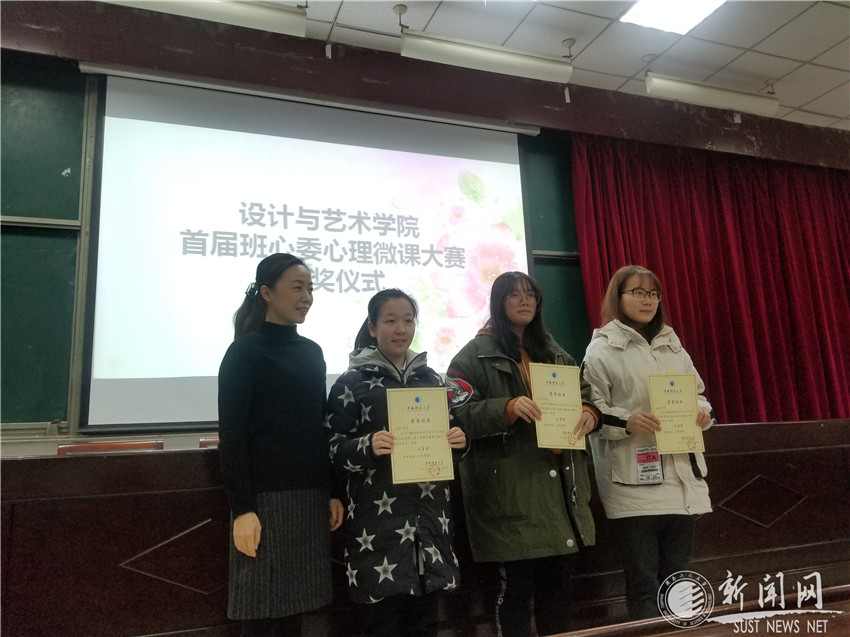 12月6日,在3號教學樓101報告廳進行了設藝學院首屆班級心理委員心理微課知識大賽頒獎儀式。由宋寶萍、董雪、安玲、安然等老師分別為獲獎學生頒發(fā)了證書及獎品。