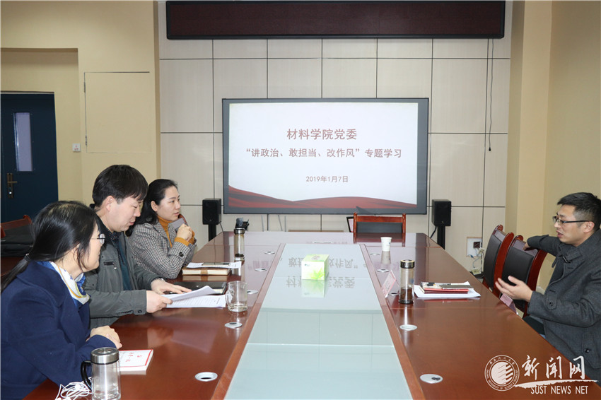 為切實(shí)增強(qiáng)“四個(gè)意識(shí)”、踐行“兩個(gè)維護(hù)”,按照校黨委的工作要求,近日材料科學(xué)與工程學(xué)院黨委召開(kāi)專(zhuān)題會(huì)議對(duì)“講政治、敢擔(dān)當(dāng)、改作風(fēng)”專(zhuān)題教育和“三項(xiàng)整治”工作再次部署研究、持續(xù)推進(jìn)落實(shí)。