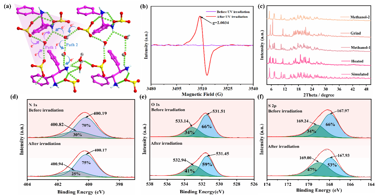 (1). R/S-iHOF-19充分發(fā)揮其結(jié)構(gòu)靈活性和氫鍵的動態(tài)特性,實(shí)現(xiàn)材料性能的精準(zhǔn)調(diào)控。通過調(diào)控結(jié)構(gòu)框架中的溶劑(水和甲醇)分子的得失可以控制光致變色的開關(guān)。實(shí)現(xiàn)了具有溫度、溶劑雙重控制的智能響應(yīng)光致變色材料的探索和合成。