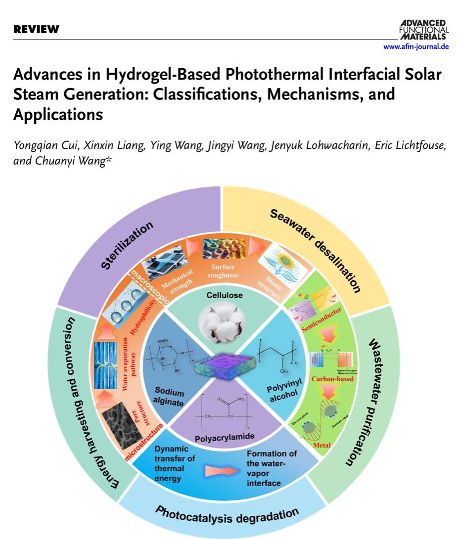 相關成果以“Advances in Hydrogel-Based Photothermal Interfacial Solar Steam Generation: Classifications, Mechanisms, and Applications”為題,發(fā)表在Advanced Functional Materials(IF = 19)上。