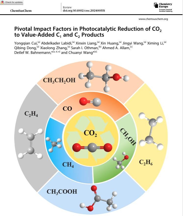 相關成果以“Pivotal Impact Factors in Photocatalytic Reduction of CO2 to Value-Added C1 and C2 Products”為題,發(fā)表在ChemSusChem(IF = 6.6)上。