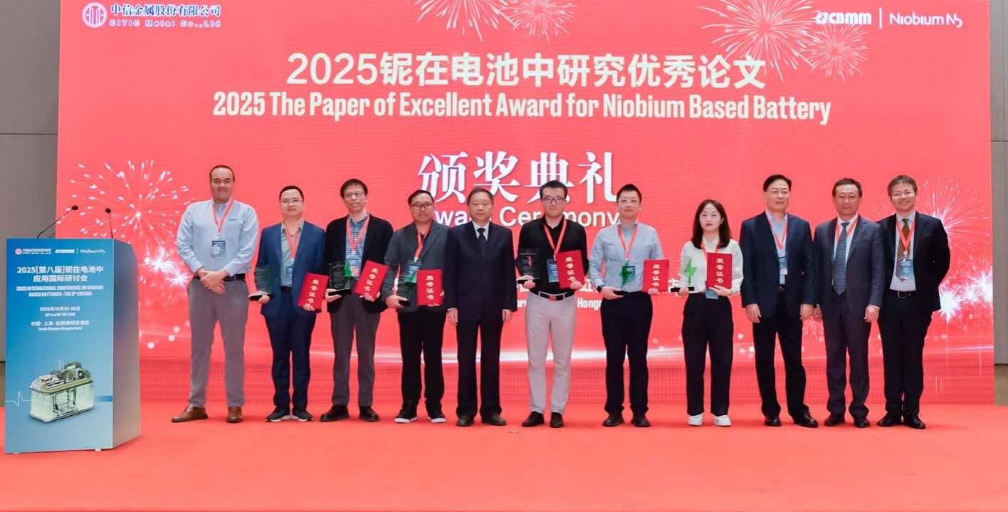 陜西科技大學(xué)景盼盼副教授的科研成果“Tailoring the Wadsley–Roth crystallographic shear structures for high-power lithium-ion batteries, Energy & Environmental Science, 2024, 17, 6571(IF2025=30.8, ESI 熱點(diǎn)論文和高倍引論文)”在“2025年鈮在電池中研究?jī)?yōu)秀論文獎(jiǎng)”評(píng)選中,從200余篇候選論文中脫穎而出,獲得“一等獎(jiǎng)”殊榮(2025 The Paper of Excellent Award for Niobium Based Battery, The First Prize)”,并分別受邀出席了于10月29-30日由中信金屬(CITIC Metal)與巴西礦業(yè)公司(CBMM)聯(lián)合舉辦的“2025[第八屆]鈮在電池中應(yīng)用國(guó)際研討會(huì)(中國(guó)上海)(2025 Internation Conference on Niobium Based Batteries-The 8th Edition)”和12月3-4日由英國(guó)貝塔科技(Beta Technology)與巴西礦業(yè)公司(CBMM)聯(lián)合舉辦的“2025 8th National Conference of Niobium-Based Batteries-Connecting Niobium to Power Up(英國(guó)倫敦)”。與會(huì)期間,景盼盼副教授分別做了題為“Blocking Configuration Tailoring and Lithium-Ion Storage of Niobium-Based Oxides with Shear-Structures”的大會(huì)報(bào)告。
