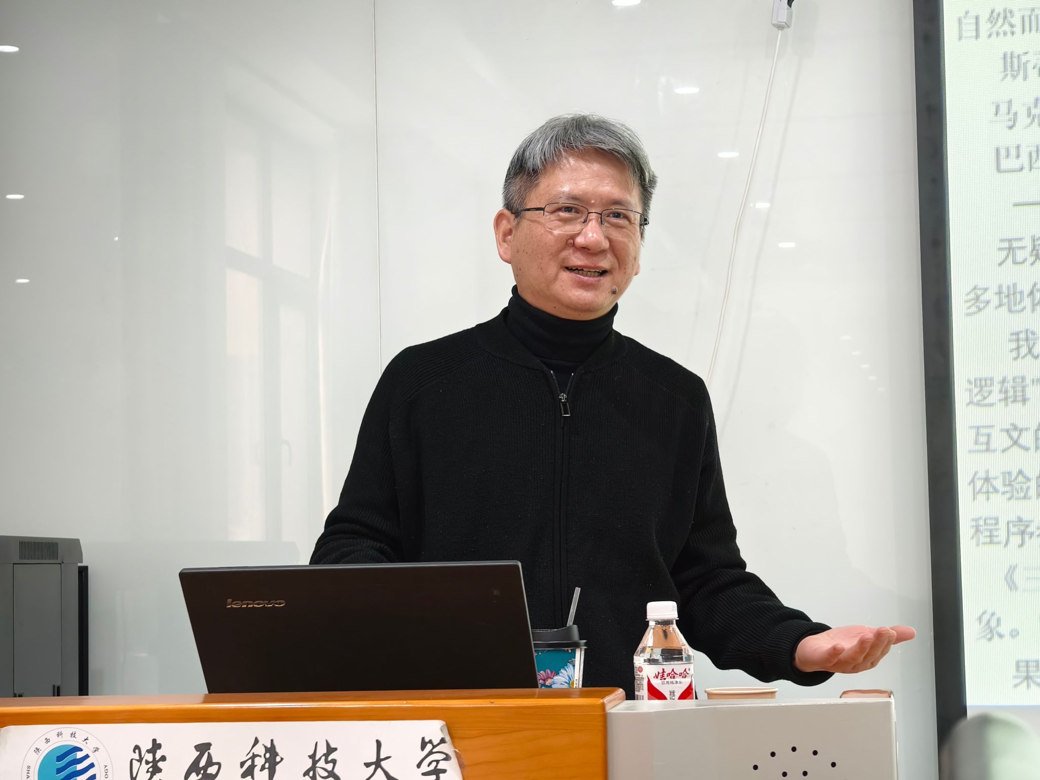 12月16日上午,應(yīng)我校設(shè)計與藝術(shù)學(xué)院、科技處及前沿院邀請,教育部高校戲劇與影視學(xué)教學(xué)指導(dǎo)委員會委員、北京大學(xué)藝術(shù)學(xué)院教授、博士生導(dǎo)師,陳旭光做客我?!扒把乜茖W(xué)報告”,在設(shè)藝學(xué)院326會議室作了題為“人機一體、虛擬現(xiàn)實與倫理預(yù)警——人工智能時代的電影工業(yè)美學(xué)新思考”的學(xué)術(shù)報告。報告會由設(shè)藝學(xué)院副院長米高峰主持,相關(guān)學(xué)科專業(yè)師生參加報告會。