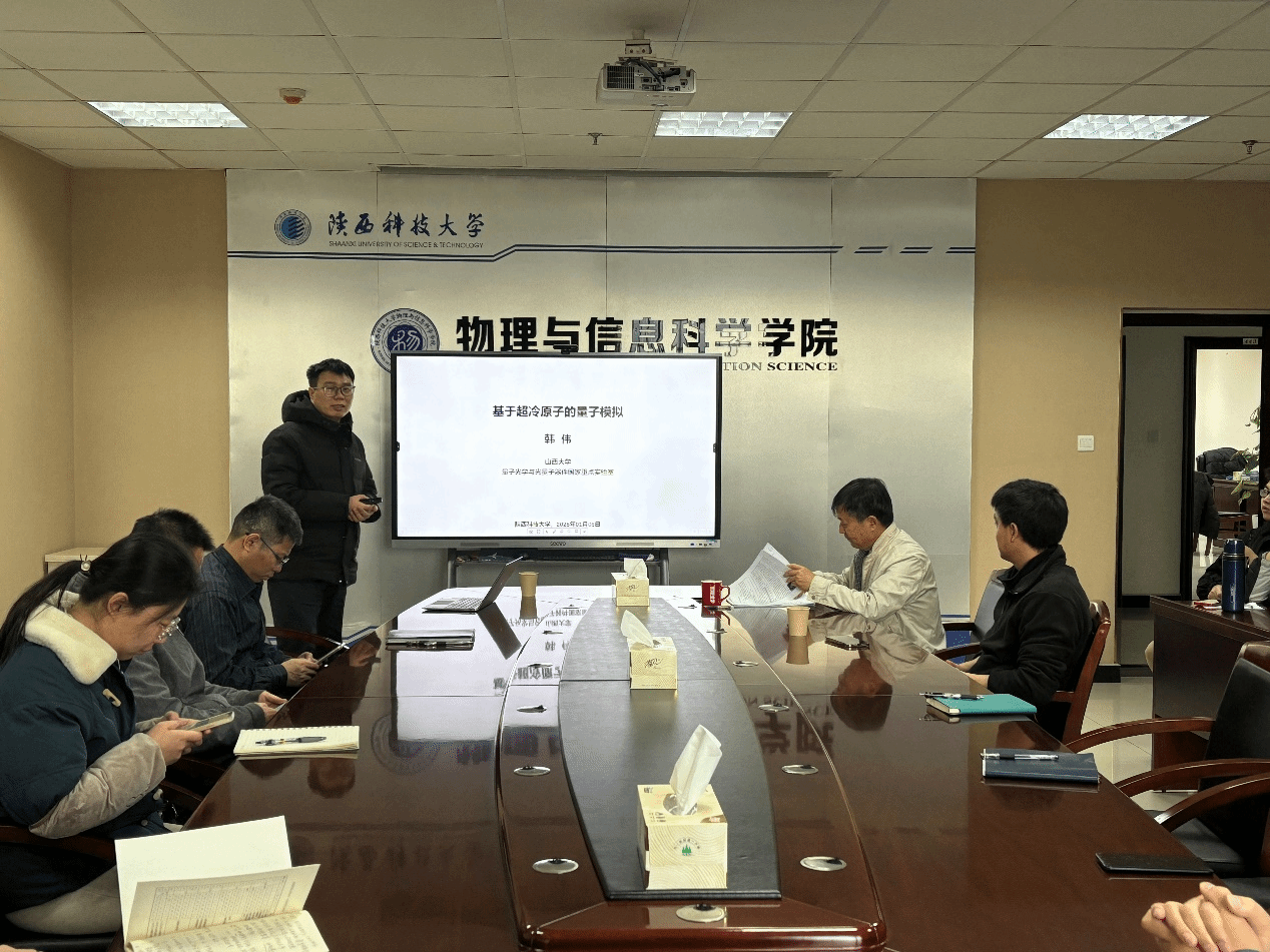 1月6日下午,山西大學(xué)韓偉教授做客我?!拔囱雽?dǎo)師論壇”,作了題為“基于超冷原子的量子模擬”的學(xué)術(shù)報告。報告會由物理學(xué)院院長劉建科主持,物理學(xué)科相關(guān)碩士研究生、導(dǎo)師參加了此次報告會。