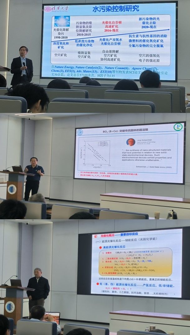 4月30日上午,應我校環(huán)境科學與工程學院、趙進才院士工作室、科技處、前沿院邀請,清華大學朱永法教授、吉林大學李廣社教授、福州大學王緒緒教授做客我校,為學院師生作了系列“前沿科學報告”。報告會由環(huán)境學院學術院長王傳義教授主持,學院相關教師和研究生參加了本次活動。