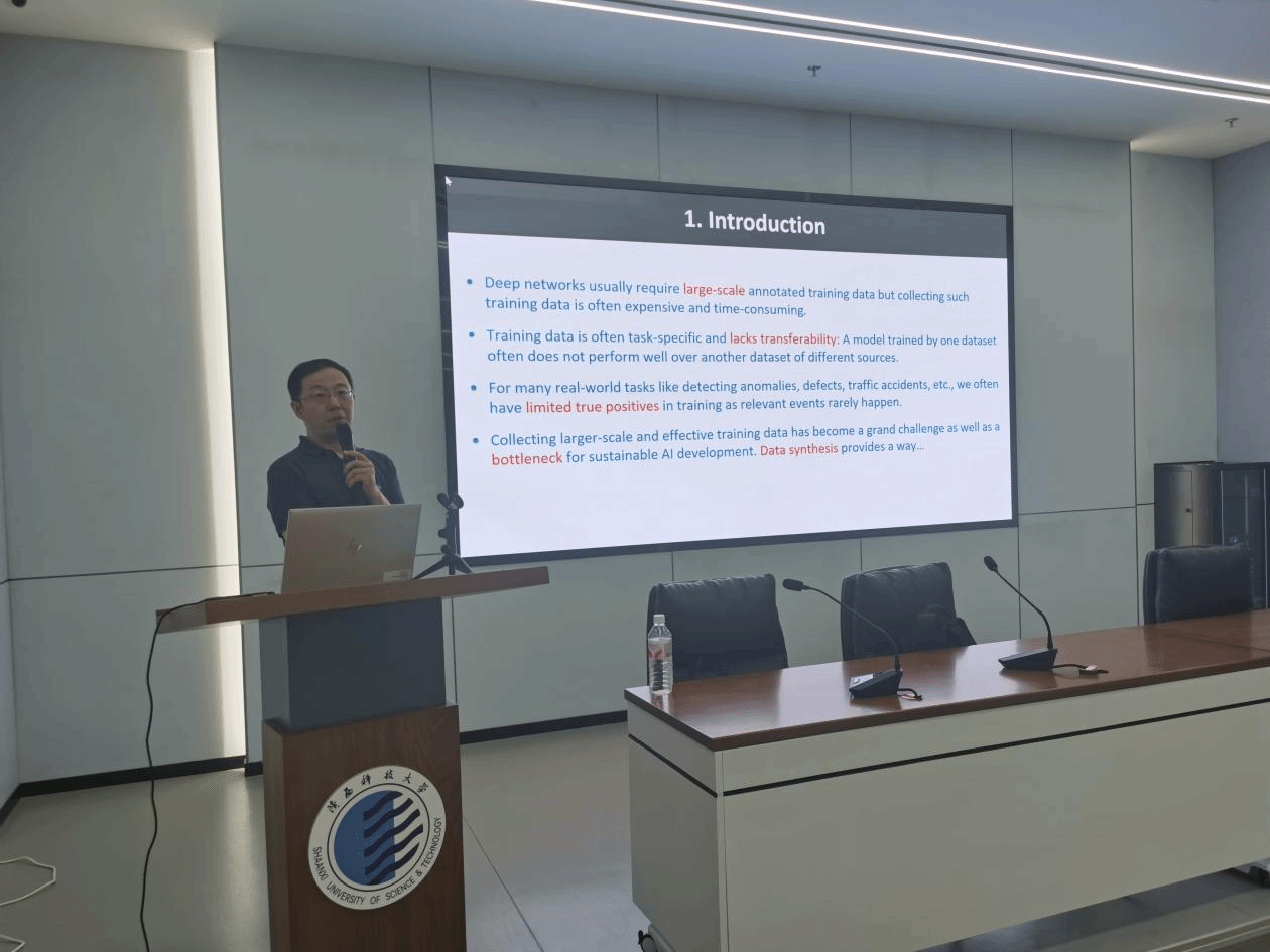 6月17日上午,受電氣與控制工程學(xué)院邀請,南洋理工大學(xué)呂士健博士做客陜西科技大學(xué)“前沿科學(xué)報告”。作了題為“Sustainable AI via Image Generation and Cross-Domain Transfer”的學(xué)術(shù)報告。會議由電控學(xué)院副院長周強(qiáng)主持,相關(guān)師生80余人參加了此次報告會。