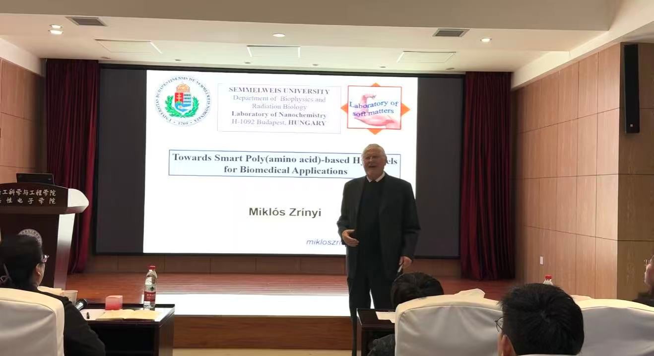 Miklos Zriny教授的研究聚焦于面向生物醫(yī)學(xué)應(yīng)用的智能聚氨基酸基水凝膠。報告了以生物相容性良好的聚天冬氨酸為基礎(chǔ),通過創(chuàng)新性地設(shè)計單交聯(lián)與雙交聯(lián)網(wǎng)絡(luò),實現(xiàn)藥物可控釋放,致力于仿生人工細(xì)胞外基質(zhì)用于組織修復(fù)。Miklós Zríny教授將智能材料與生物醫(yī)學(xué)完美結(jié)合,為跨學(xué)科科研和持續(xù)創(chuàng)新提供了重要啟發(fā)與新的思路。