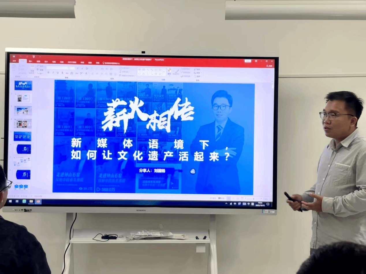 報告會上,劉國楊教授結(jié)合自身在文化傳播領(lǐng)域和自媒體領(lǐng)域的實踐和積累,從“扎根田野”“時空對話”“破壁表達(dá)”“跨界共創(chuàng)”四個維度出發(fā),對如何將文化遺產(chǎn)與新媒體相結(jié)合,推動文化遺產(chǎn)活化做了詳細(xì)講述,表示一定要對文化遺產(chǎn)懷有敬畏之心,善于挖掘文化遺產(chǎn)背后的故事,肩負(fù)起傳播優(yōu)秀傳統(tǒng)文化的時代使命。