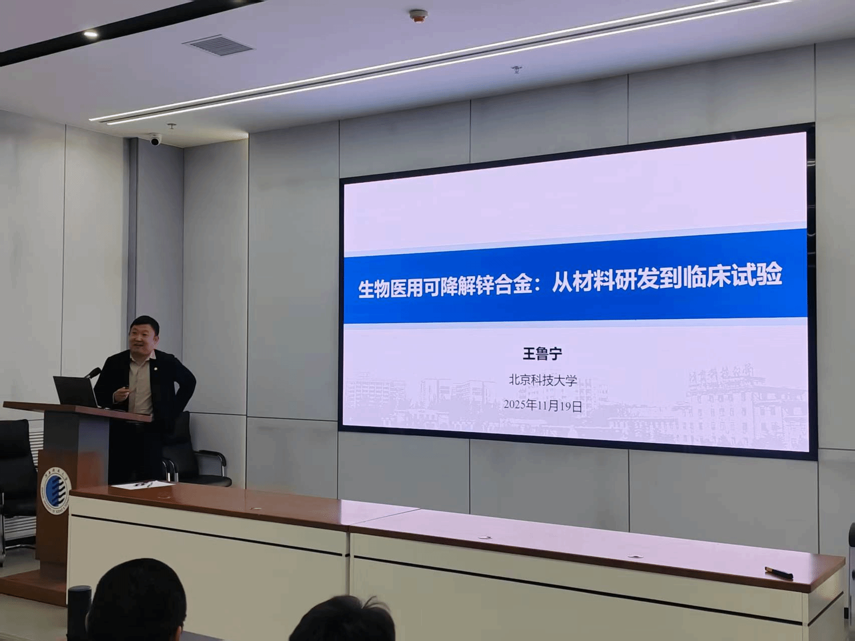11月19日,應(yīng)科技處與化學(xué)與化工學(xué)院聯(lián)合邀請(qǐng),北京科技大學(xué)王魯寧教授作題為“生物醫(yī)用可降解鋅合金:從材料研發(fā)到臨床試驗(yàn)”的專(zhuān)題報(bào)告。本次報(bào)告由化工學(xué)院科研院長(zhǎng)黃文歡主持,學(xué)院骨干教師、研究生代表積極參會(huì)。報(bào)告現(xiàn)場(chǎng)互動(dòng)頻繁、氛圍熱烈,內(nèi)容兼具學(xué)術(shù)深度與實(shí)踐價(jià)值,贏得了在場(chǎng)師生的廣泛好評(píng),反響良好。