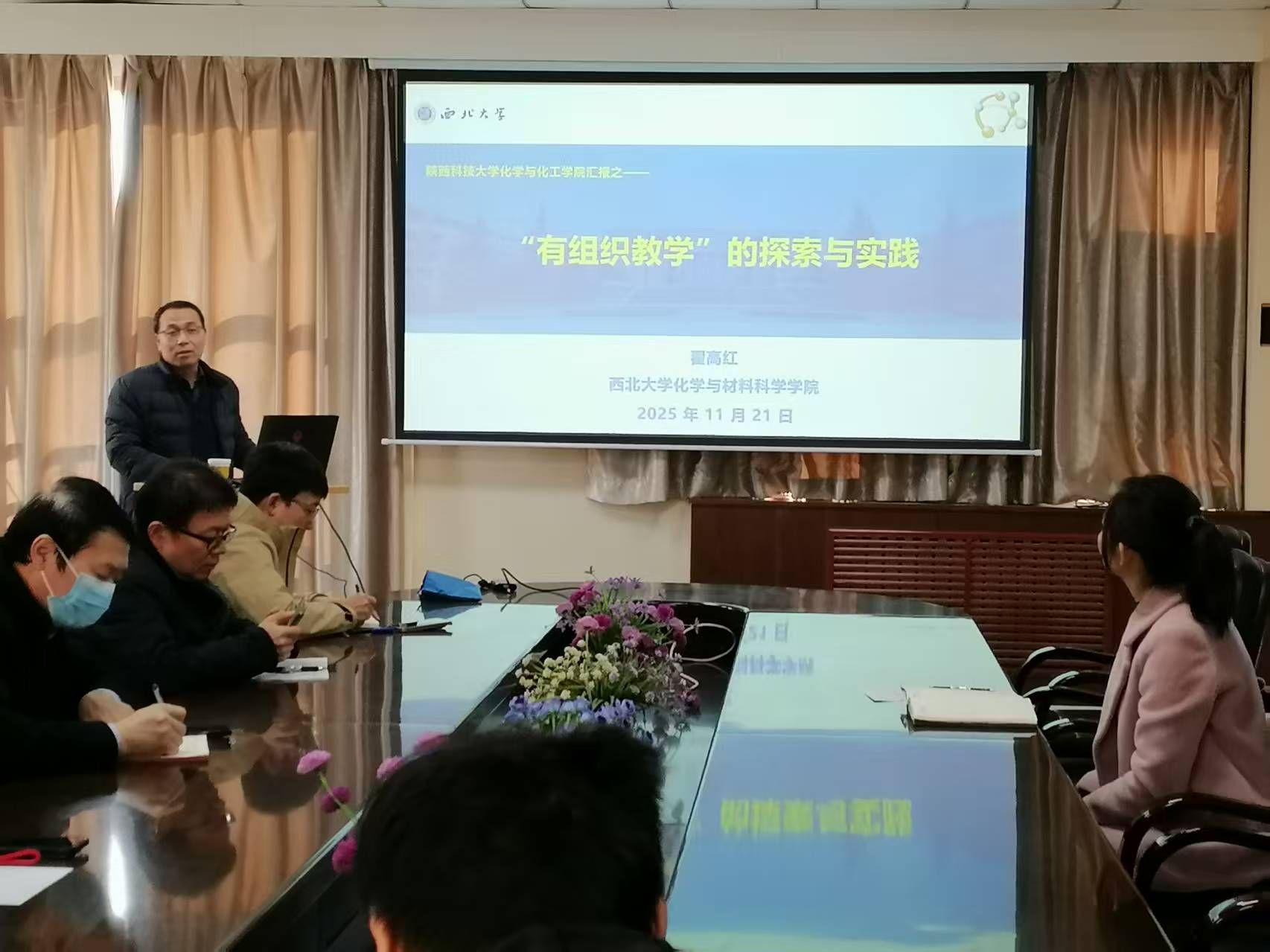 為落實(shí)本科教育教學(xué)審核評估工作要求,提升教學(xué)管理水平,11月21日上午,教務(wù)處、化學(xué)與化工學(xué)院邀請西北大學(xué)化學(xué)與材料科學(xué)學(xué)院副院長翟高紅教授做客我?!敖逃虒W(xué)論壇”,在實(shí)驗(yàn)樓1A-312會議室做題為“有組織教學(xué)的探索與實(shí)踐”的專題報告。學(xué)院各系、教研室、實(shí)驗(yàn)室主任、教學(xué)秘書、教師代表參會,會議由學(xué)院副院長黃文歡主持。